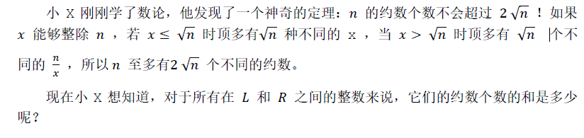 一行个数,表示 一行个数,表示 L到 R内所有整数的约个和。2 613
